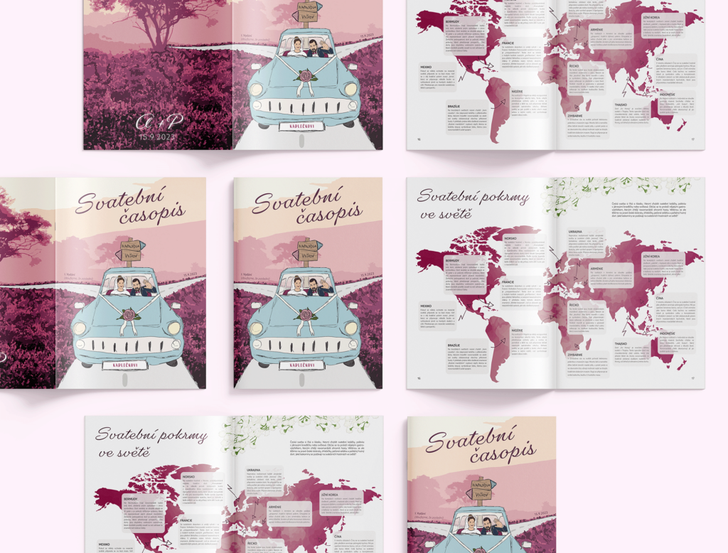 Nabízím široké spektrum služeb, např. tiskoviny, svatební noviny na míru, logafiremní identita a branding či ilustrace.