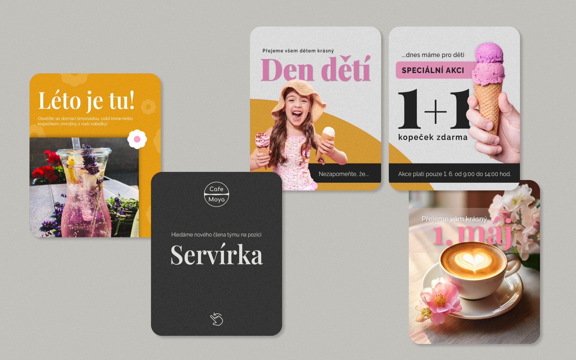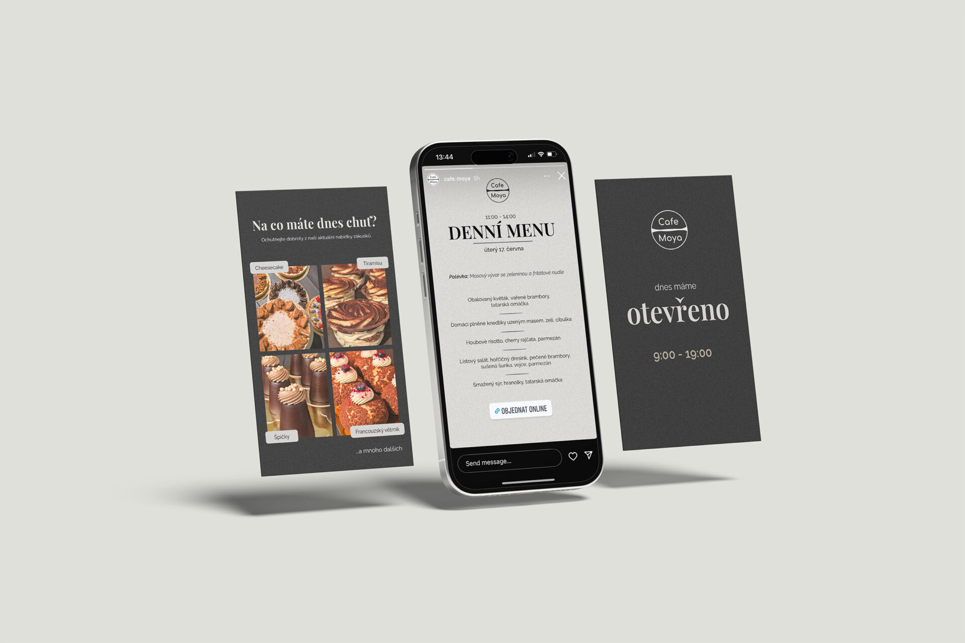 Pro kavárnu Cafe Moya zajišťuji kompletní správu sociálních sítí – tvorbu příspěvků, reels, stories a promo obsahu na základě podkladů od klienta. Obsah je laděn do jednotného vizuálního stylu, který odráží atmosféru kavárny a podporuje komunikaci se zákazníky i propagaci speciálních akcí.